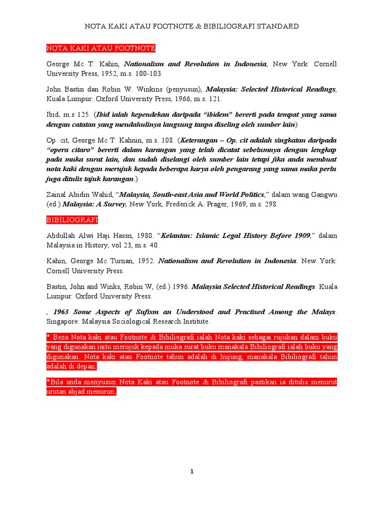 Doc Kaedah Penulisan Nota Kaki Dan Bibliografi Ayob Ibrahim Academia Edu