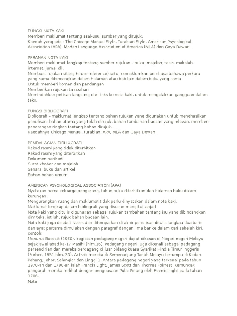Contoh Dan Format Nota Kaki Apa Style Pdf